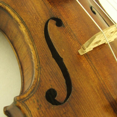 This very interesting violin has a John Juzek label that is not original to this violin. It does seem to be modeled after the narrow bodied Niccolo Gagliano violins. It looks like the work of an individual and was probably made in the mid to late 1800’s. This violin is very easy and satisfying to play. It is well worth taking a close look at.